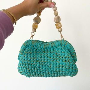 Sac Crochet Turquoise Doré Tina