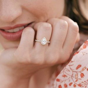Bague Or jaune 750 ‰ Diamant Baby Rétromantique Poire Pavée