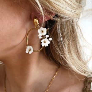 Boucles d’Oreilles Acier Inoxydable Doré et Nacre Jacinthe