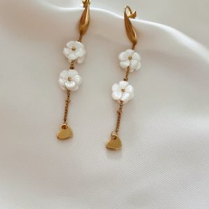 Boucles d’Oreilles Acier Inoxydable Doré et Nacre Dahlia