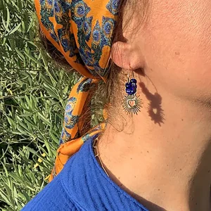 Mini Créoles Coeur en Soleil Bleu