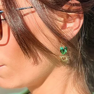 Mini Créoles Coeur en Soleil Vert
