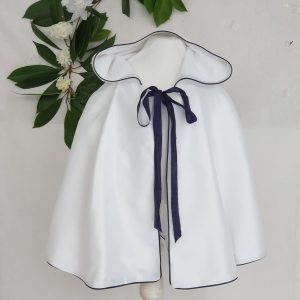 Cape ottoman blanc et marine cape en ottoman blanc borde Maine doublée en coton fabrication française