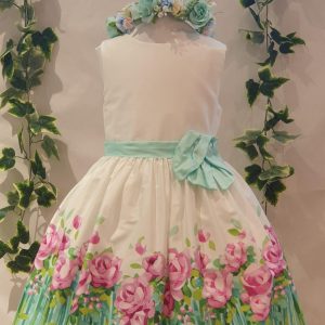 Robe mayoral imprimé rose ceinture verte du 4 ans au 9 ans 59 euros