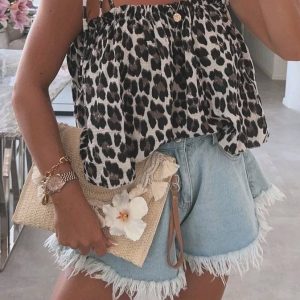 TOP DEBARDEUR LEOPARD FEMME EN COTON