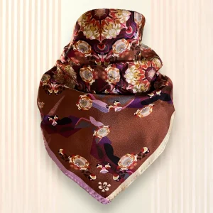 Foulard soie Gavroche Hortensias bruns
