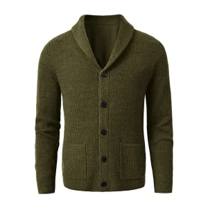 Gilet chaud en tricot épais à col châle pour homme