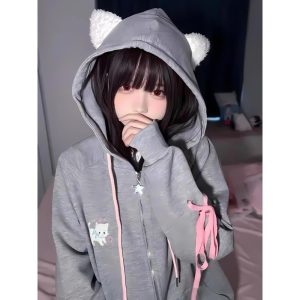 Gilet sweat zippé kawaii avec oreilles de chat pour femme