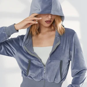Gilet à capuche court en velours stretch avec poches pour femme