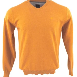Pull V coton REDMOND 600rd ocre orangé