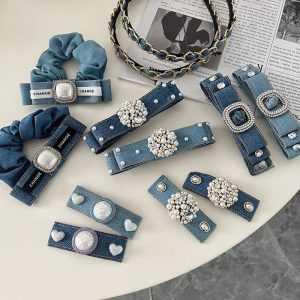 Barrette de cheveux frisés en Denim avec nœud solide