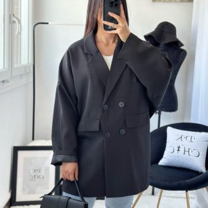 Blazer Manches Papillon Oversize Mi-Long Noir