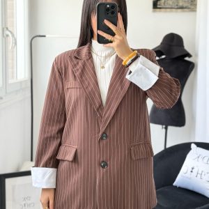 Blazer Marron Rayures Blanche à Poches