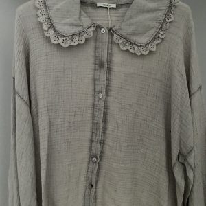 CHEMISE BEIGE EN GAZ DE COTON COL CLAUDINE FEMME