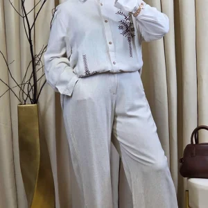 Pantalon Rayé Beige Brodé Jules