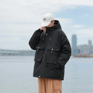 Manteau polaire homme rembourré et avec capuche en fausse fourrure