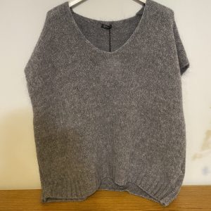 PULL GRIS COL V SANS MANCHES EN KID MOHAIR ET LAINE