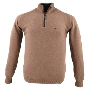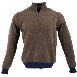 pull BEST GUEST col montant 80% laine marron