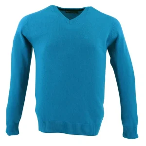 pull BEST GUEST col V 80% laine bleu turquoise 702bg
