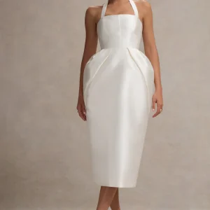 Cosetta – Robe Mi-Longue Blanche à Col Halter avec Jupe Tulipe
