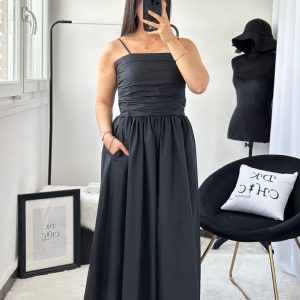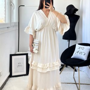 Robe à Ceinture Cache Coeur avec Poches Coton Popeline Jaune