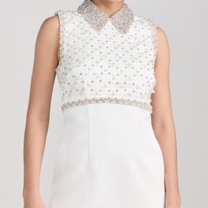 Drusilla Bow Back Mini Bridal Dress in Ivory Textured Cloque