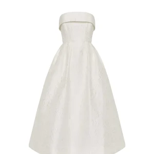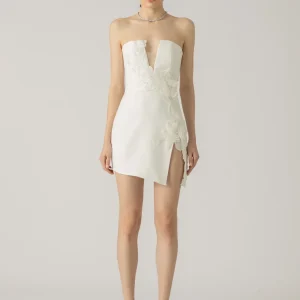 Faye – Mini-robe blanche bandeau à jupe boule avec détails froncés