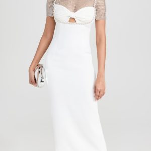White Crepe Diamante Midi Dress