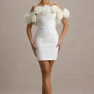 Von – Mini-robe blanche bardot avec bordures à volants