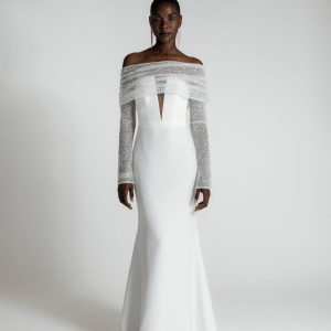Wren White Satin Off-The-Shoulder Gown