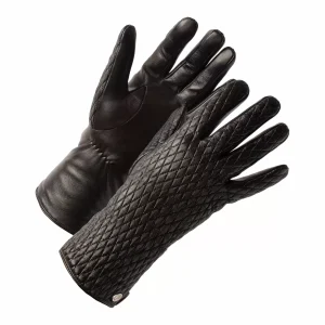 Jade (Zwart) – Lams leren Dames Handschoenen met Diamant Motief, Luxe Wollen Voering en Touch-functie