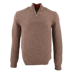 pull homme laine tweed marron moucheté col zip BEST GUEST Bill-bg