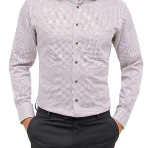 chemise homme imprimée marron sur fond blanc ETERNA modern fit