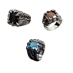 Bague gothique griffe de dragon avec pierre rouge ou bleue – Bijou fantasy rock métal homme/femme
