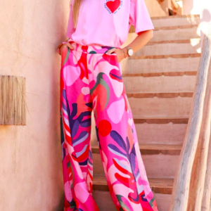 T-SHIRT LOOSE COL ROND MANCHES COURTES CŒUR ET ÉCRITURE DEVANT ET DOS LOVE IS A KISS