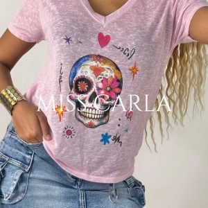 T-SHIRT TETE DE MORT EN COTON ET VISCOSE (de miss carla )