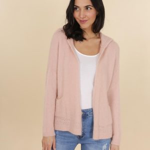 GILET CARDIGAN NAIS A CAPUCHE ET POCHES AVEC DETAILLE AJOURES EN MOHAIR