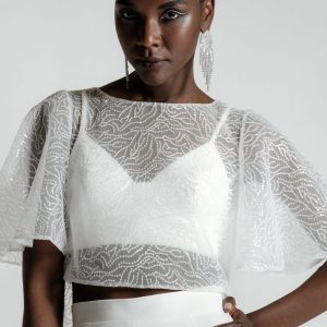 - Padded shoulders and long sleeves
