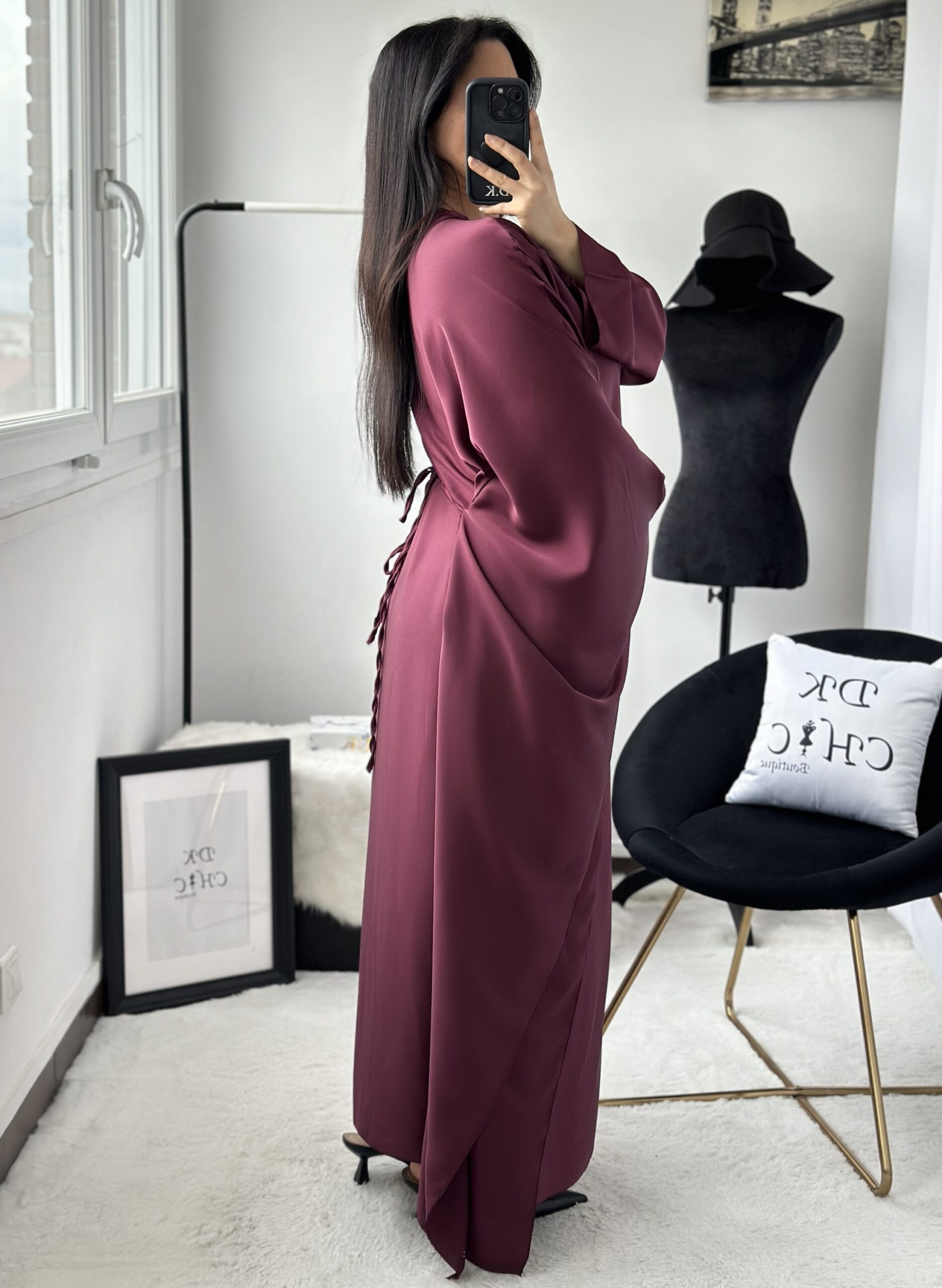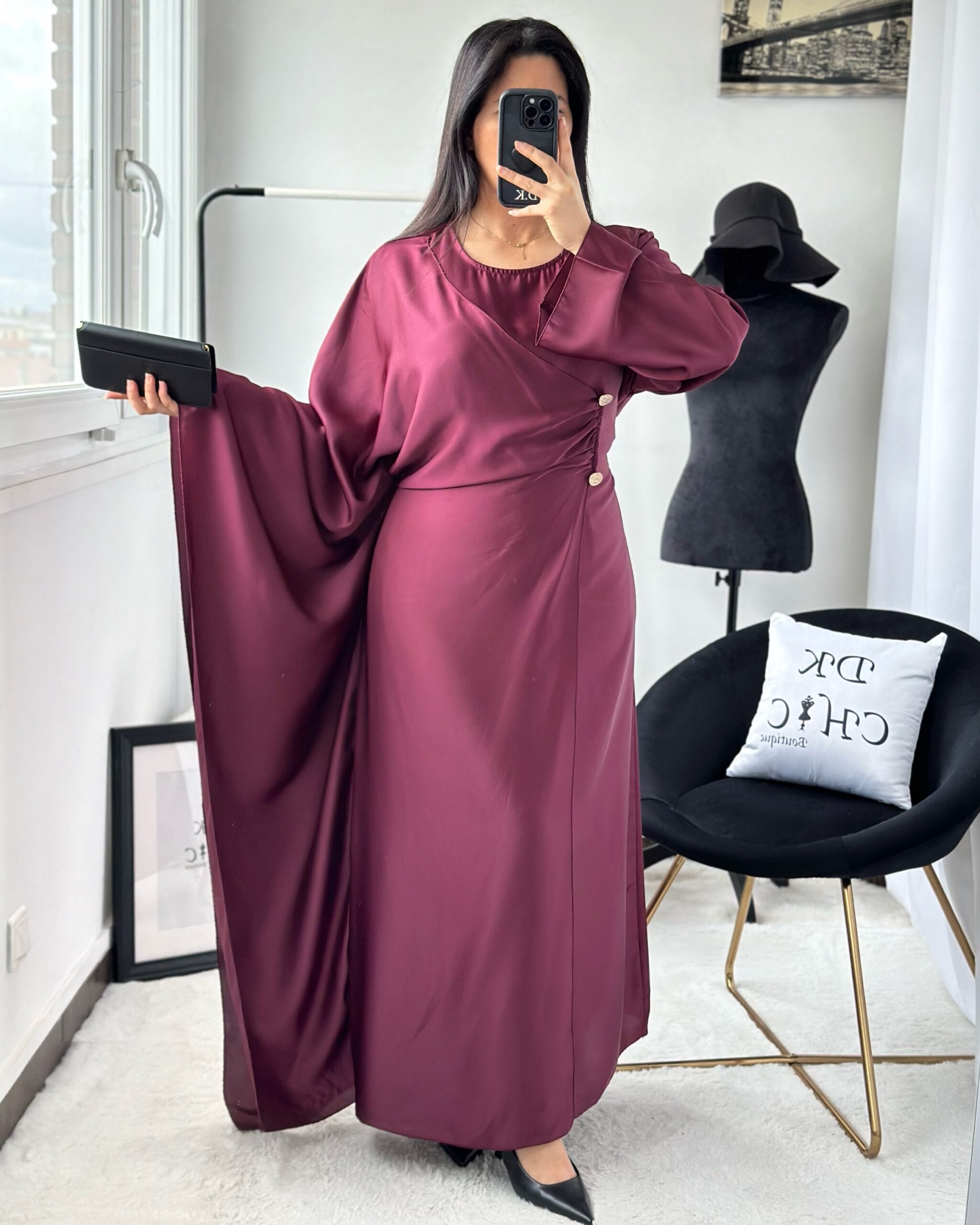 – Abaya satinée à manches papillon et faux boutons sur le coté