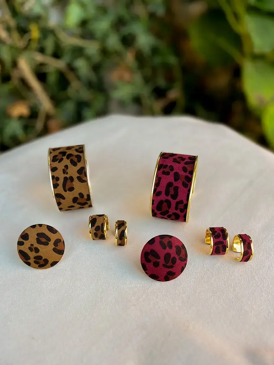 - Couleurs motif léopard : rouge framboise / marron