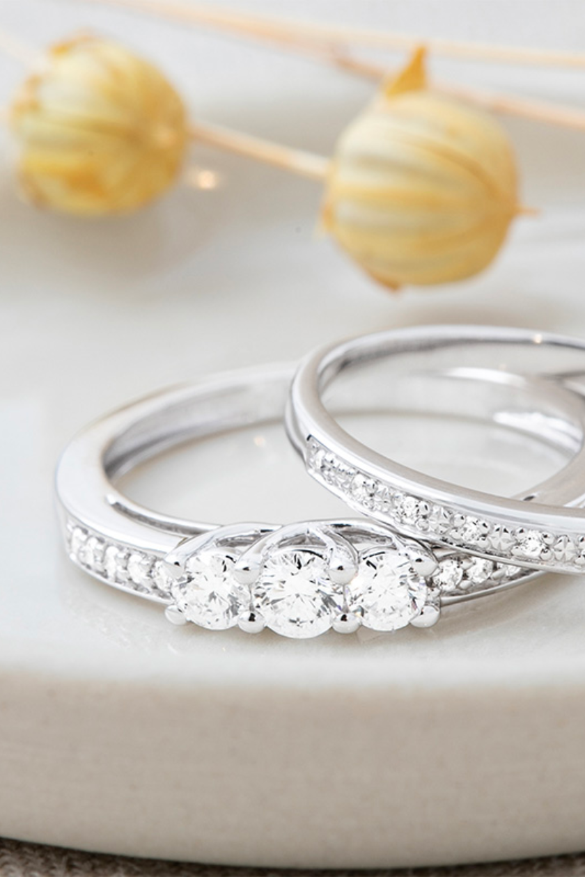 Bague de Fiançailles Or Blanc Trilogie pavée – 0.34 carat – or blanc 18 carats : bijoux Edenly