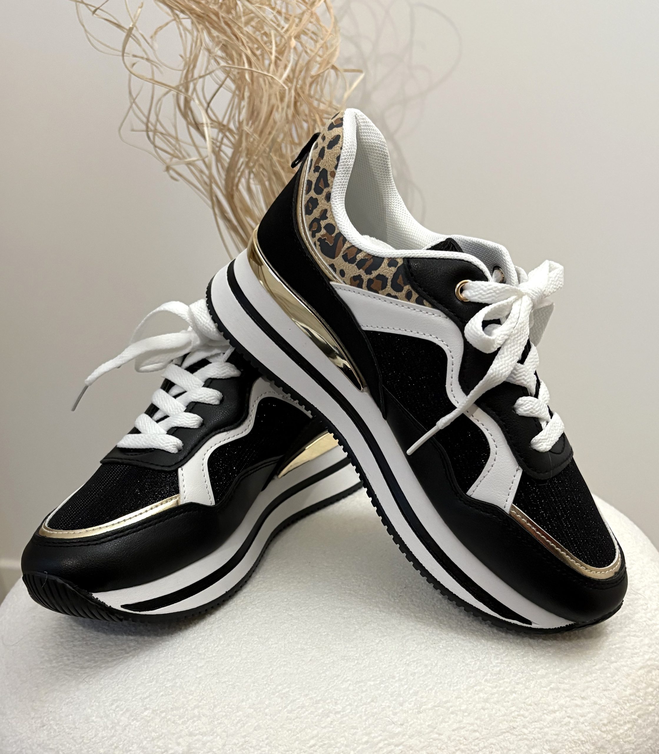 Les basket léopard femme deviennent incontournables pour sublimer un look. En effet, leur imprimé animalier apporte une note audacieuse. De plus, leur teinte noire et leurs détails dorés s’accordent à de nombreuses tenues. Vous pouvez ainsi les porter en toute occasion.