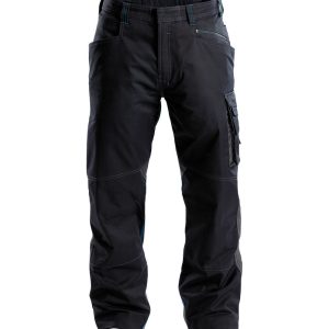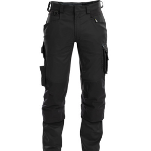 Ceinture fermée par bouton clou. Elastique côtés. 4 passants + 1 dos trapèze. Braguette fermée par fermeture à glissière. 2 poches cavalière + 1 poche portable insérée dans poche cavalière droite. 1 poche cuisse à soufflet fond et dos avec rabat fermé par pressions. 1 poche téléphone avec rabat fermé par auto-agrippant en superposition et ouverture pour poche cuisse + élastique avec compartiment pour outils sur poche. 2 poches mètre superposées sur jambe dos gauche. Hausse dos. 2 poches dos plaquées.Triple couture sur fond et entrejambe.