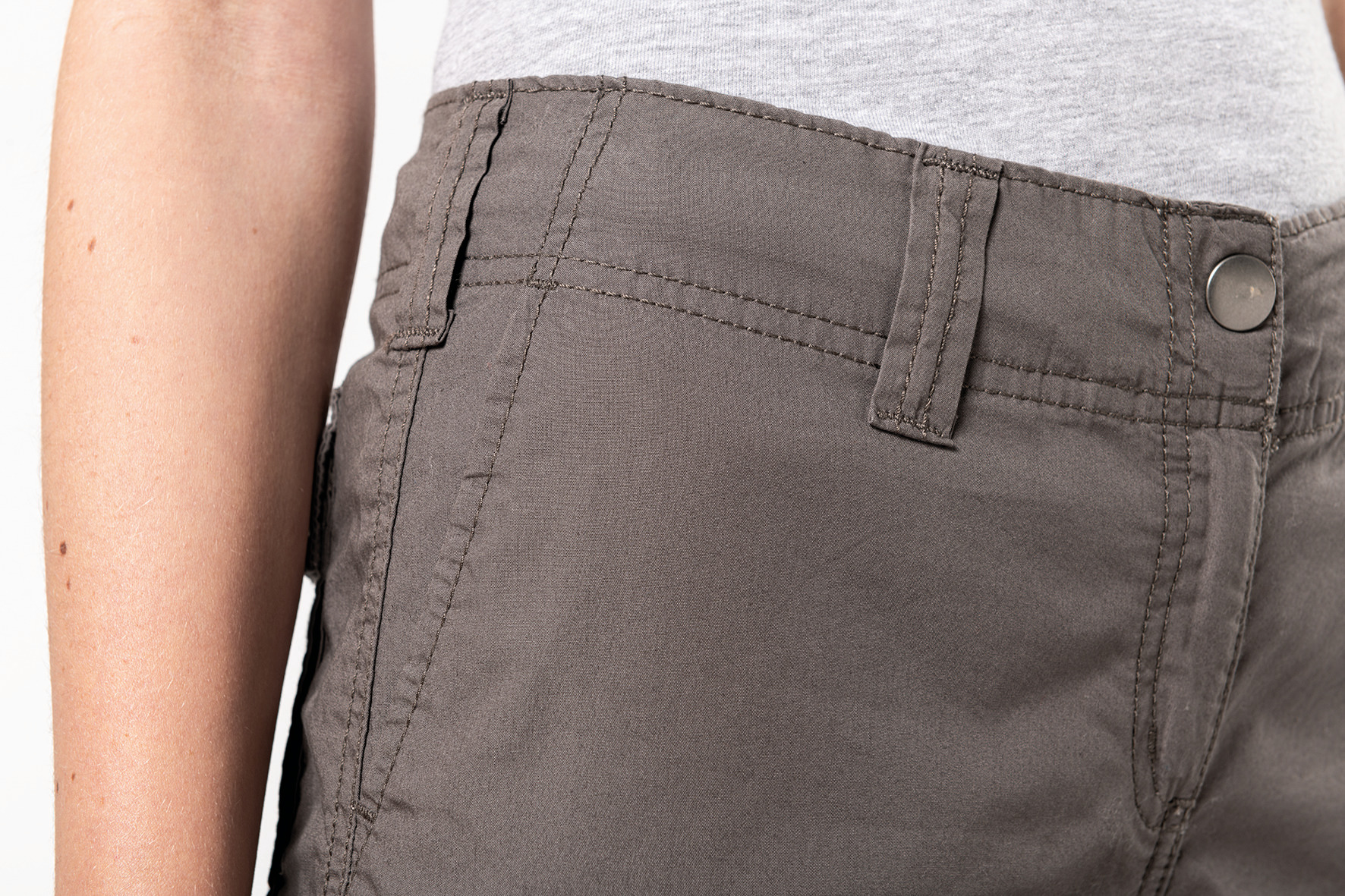 100% coton. Tissu popeline lavé pour un aspect souple et confortable. Intérieur ceinture contrasté avec cordon de serrage. Fermeture zippée et bouton pression. 2 poches italiennes devant. 2 poches à soufflet avec rabat et bouton pression à l’arrière et côtés.