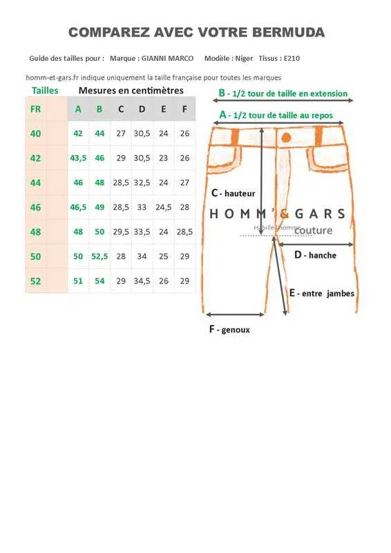 Nous avons mesuré chacun de ces bermudas, comparez nos mesures sur la dernière image avec vos bermudas actuels.