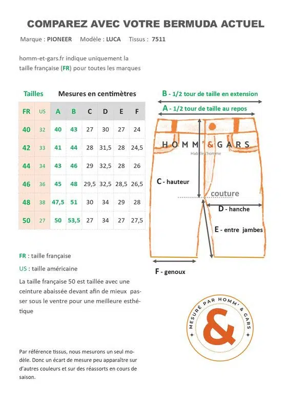 Le guide des tailles se trouve sur la dernière photo. Comparez avec votre bermuda actuel nos mesures