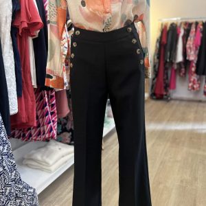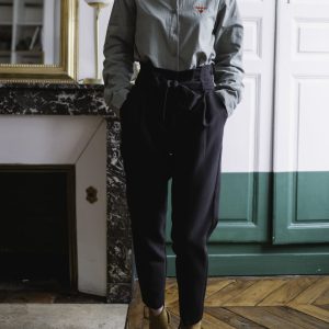 Longueur mi-cuisse, bouton et fermeture éclaire, passants pour la ceinture.
