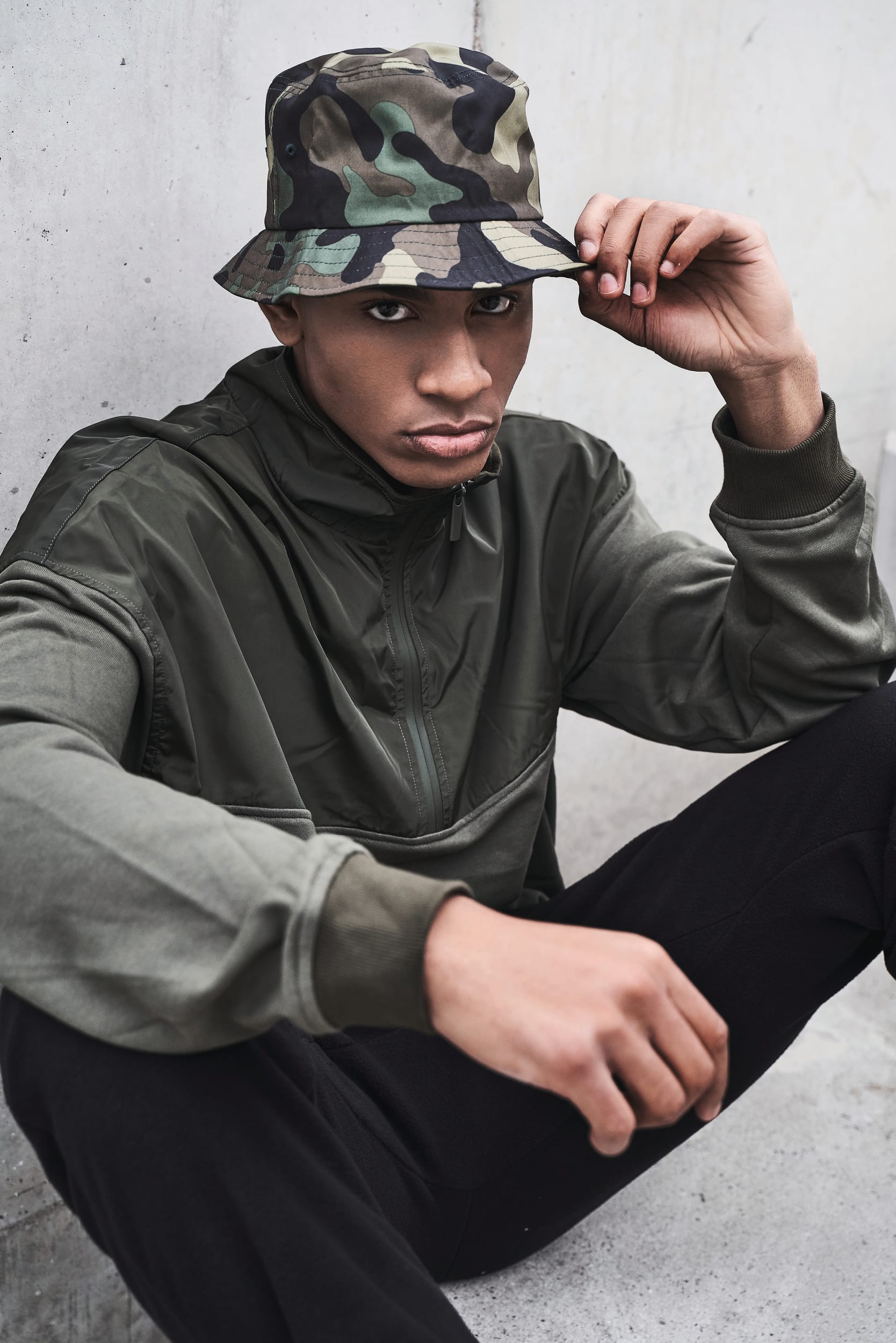 100% polyester. Le camouflage fonctionne toujours ! Ce bob au motif camouflage vert le prouve. Enfilez-le et partez à l’aventure. Des surpiqûres décoratives qui entourent le bob font bien entendu partie du style.