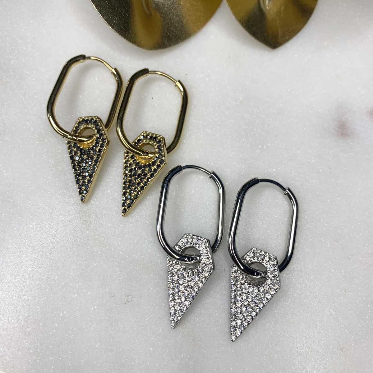Découvrez nos boucles d’oreilles triangulaires et argentées.