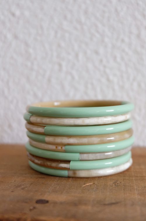 Conseil Mode : Les bracelets en corne laquée peuvent se porter à l’unité ou en version semainier. A porter avec nos bracelets bouddhistes pour être encore plus tendance !